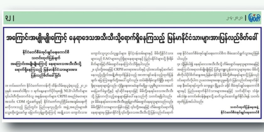 Myanmar citizens in the United States can return to their homeland; they are welcome. Since April 2, 2021, the State Administration Council has officially issued declarations inviting Myanmar citizens who are abroad for various reasons to return.