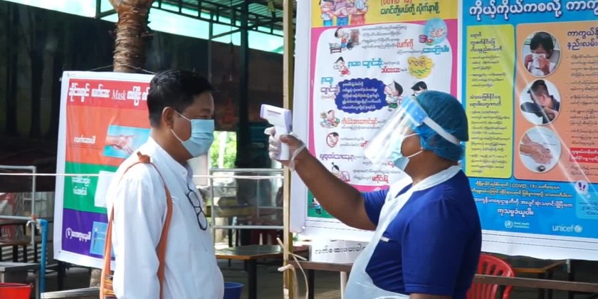 Magwe Township Information and Public Relations Department, in cooperation with the social organizations, distributed COVID-19 awareness posters and vinyl sheets at the tea shops and restaurants.