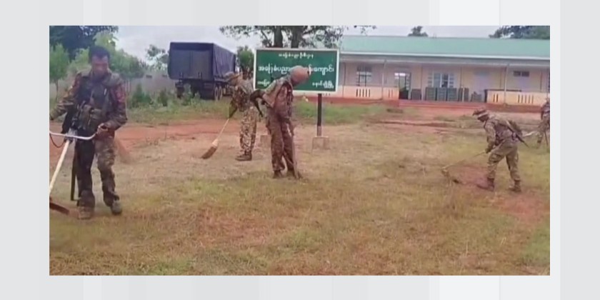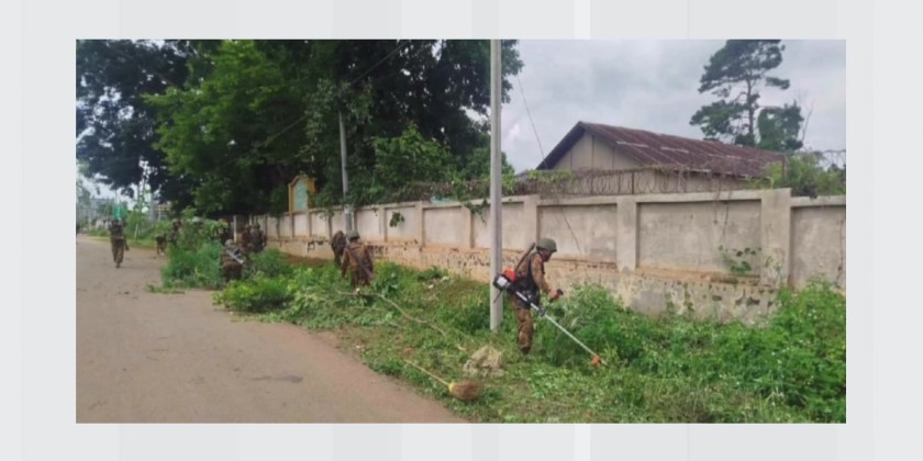 Tatmadaw personnel also undertook necessary mine clearance, security, and school environment clean-up operations to ensure students can learn peacefully, happily, cleanly, and safely. Furthermore, at No. 2 Basic Education High School, No. 2 Basic Education Primary School, No. 3 Basic Education Primary School, and Thabyay Yay Basic Education Primary School in Naungcho Township, Tatmadaw personnel are clearing bushes and weeds, digging drainage ditches, pruning trees for light, and spraying for mosquitoes to ensure the cleanliness and pleasantness of the school compounds, facilitating their reopening.
