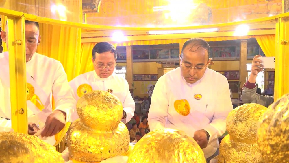 A ceremony to offer gold foils to the Buddha Images of Inle PhaungDawOo Pagoda was held on Sunday. Shan State Chief Minister U Aung Aung and officials attended the ceremony and offered gold foils to the Buddha Images together with the community elders and local residents as well as the pilgrims.