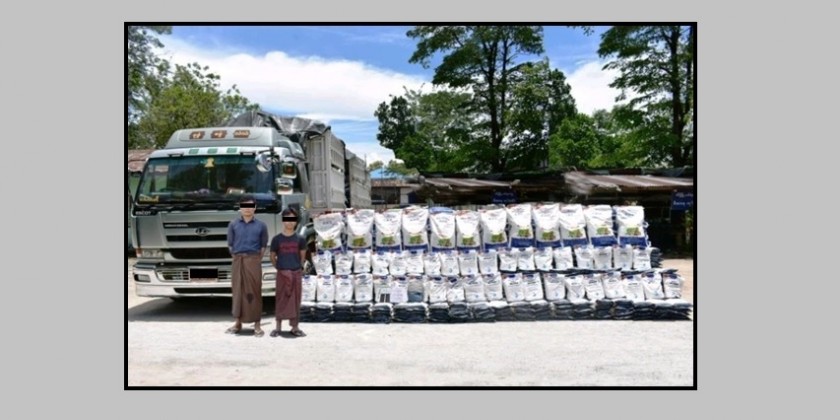 Acting on tip-off, at 7 p.m. on 26th July, a combined team consisting of members of the Anti-Drug Police Force conducted a search of NISSAN 22-Whellers driven by Aung Ko Min accompanied by Hein Min Zaw from Muse to Lashio at Yaypu permanent checkpoint in Chaung Hsar Village, Theini Township, Shan State (North).