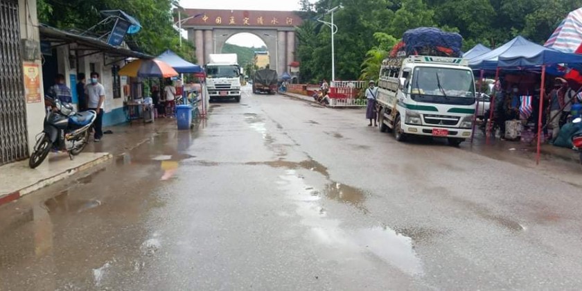 Myanmar nationals are returning from China through Myanmar-China border gate in Chin Shwe Haw, Laukkai Township of Kokang Self-Administered Zone. On Wednesday evening, 100 returnees came back from China through the border gate.