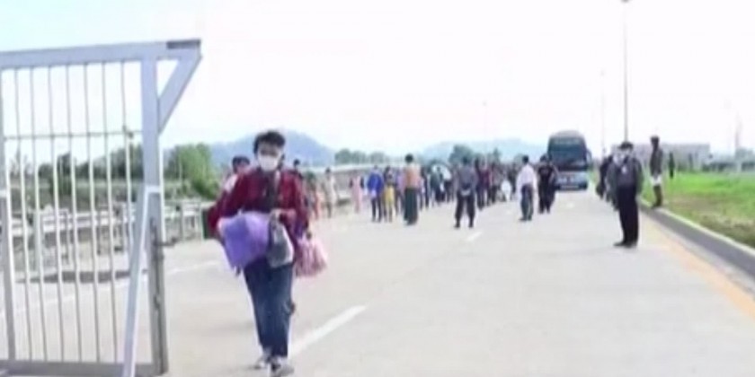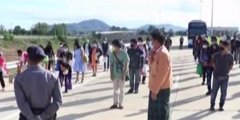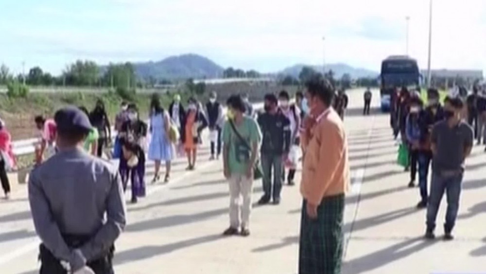 The returnees were picked up in express buses by the district level responsible officials to the Mae Sot. Those will be sent to the respective quarantine centers after conducting medical tests.