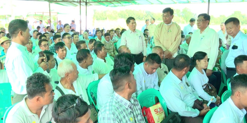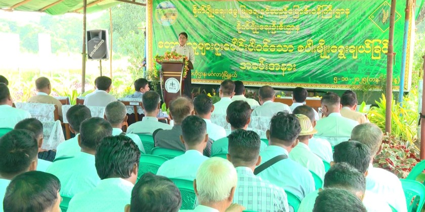 Following this, the Director General of the Department of Agriculture, Dr. Ye Tint Tun, explained the purpose of holding the Farmer-Participatory Variety Selection and New Rice Variety Introduction event.