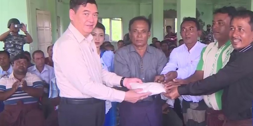 Rakhine State Chief Minister U Htein Lin, along with deputy ministers and state officials, visited the IDP camps in Sittway Township and provided them with essential supplies.
