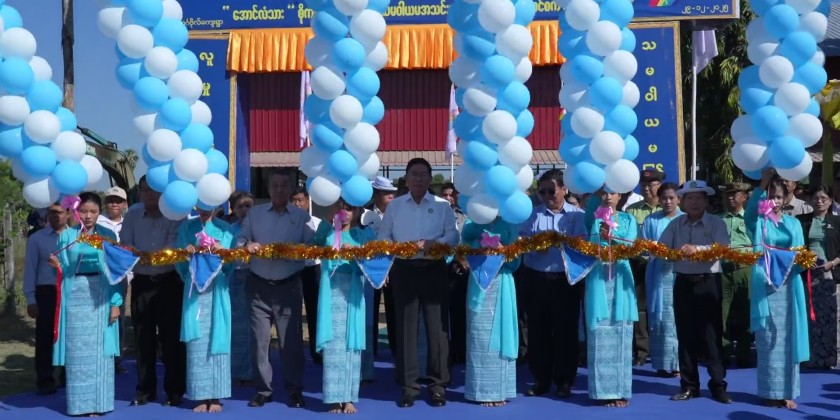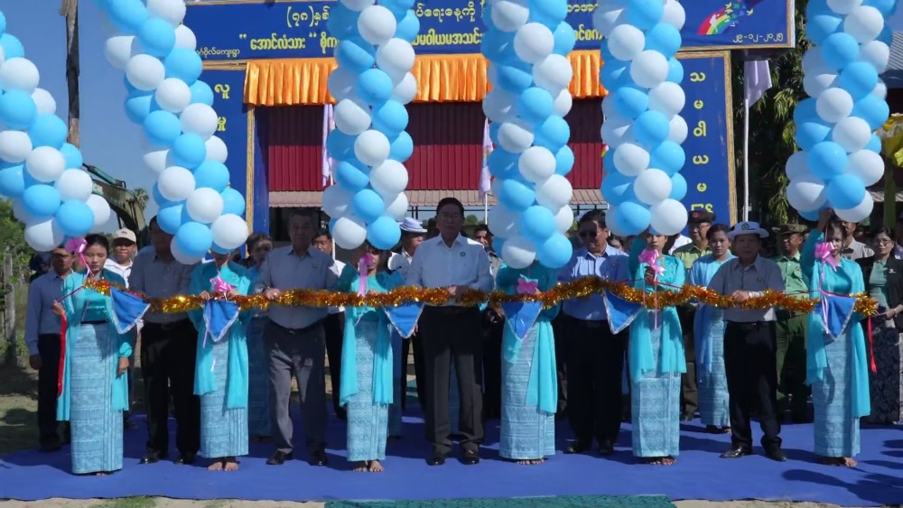The opening ceremony for the rice milling and sorting machine of the Aunglan Thar Cultivation and Production Cooperative Society, constructed with funding from the National Economic Promotion Fund loan, was held in front of the rice milling and sorting machine in Duringabo Village, Aunglan Township, Aunglan District, Magway Region on December 29. Magway Region Chief Minister U Tint Lwin, accompanying ministers, responsible officials from Region/District/Township-level departments, and cooperative member farmers attended the ceremony.