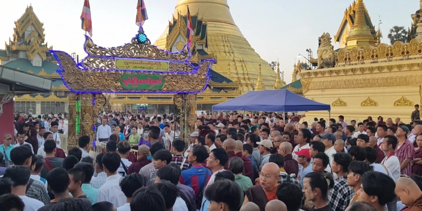 Buddhist devotees in Thaton Township of Mon State held a rice offering ceremony at the Shwe Saryan Pagoda on Monday, the full moon day of Tazaungmon. Rice and other offertories were offered to 1,189 members of the Sangha and nuns from 347 monasteries and 85 nunneries.