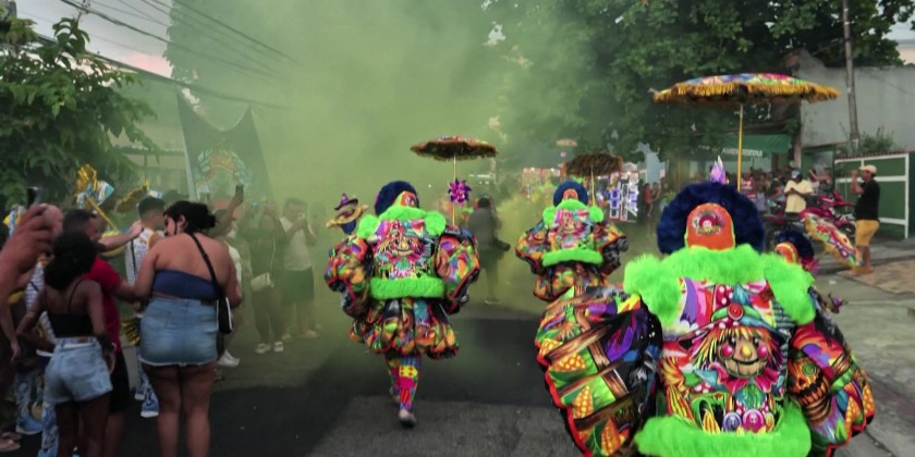 Crews in Rio's outskirts don clown-like costumes and race through neighborhoods to a frenetic mix of funk, fireworks and fear. Men have long dominated bate-bola but nowadays women are joining in. The traditional Bate-bola event saw groups of masked revelers carrying a ball tied to a string and or bounce the ball on the ground as they parade through the streets.
