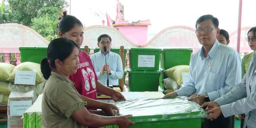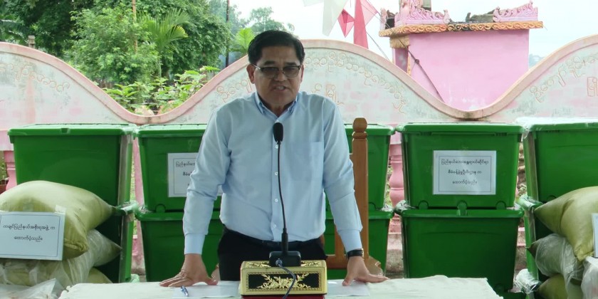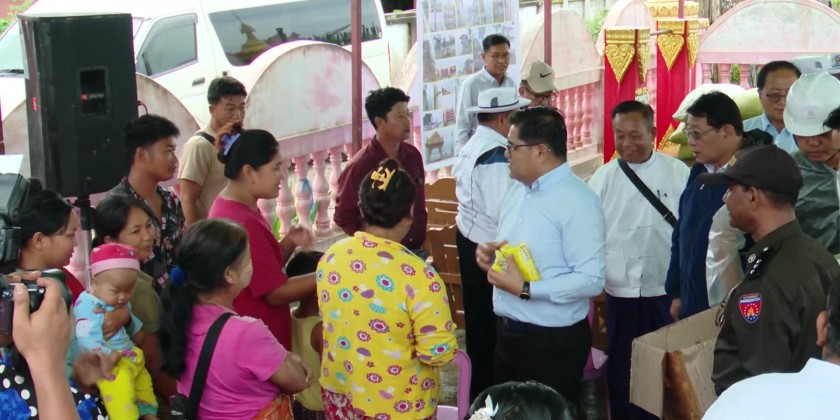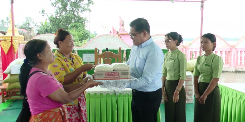 Chief Minister U KhetHtein Nan visited Mainar Village in Waimaw Township on Wednesday, where erosion had damaged houses and a pagoda. During his visit, the Chief Minister met with affected victims and provided rice, noodles, and relief items to 18 households impacted by the disaster.