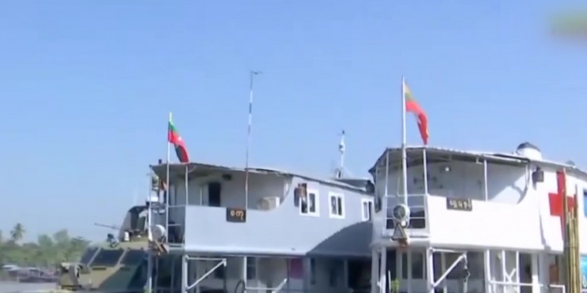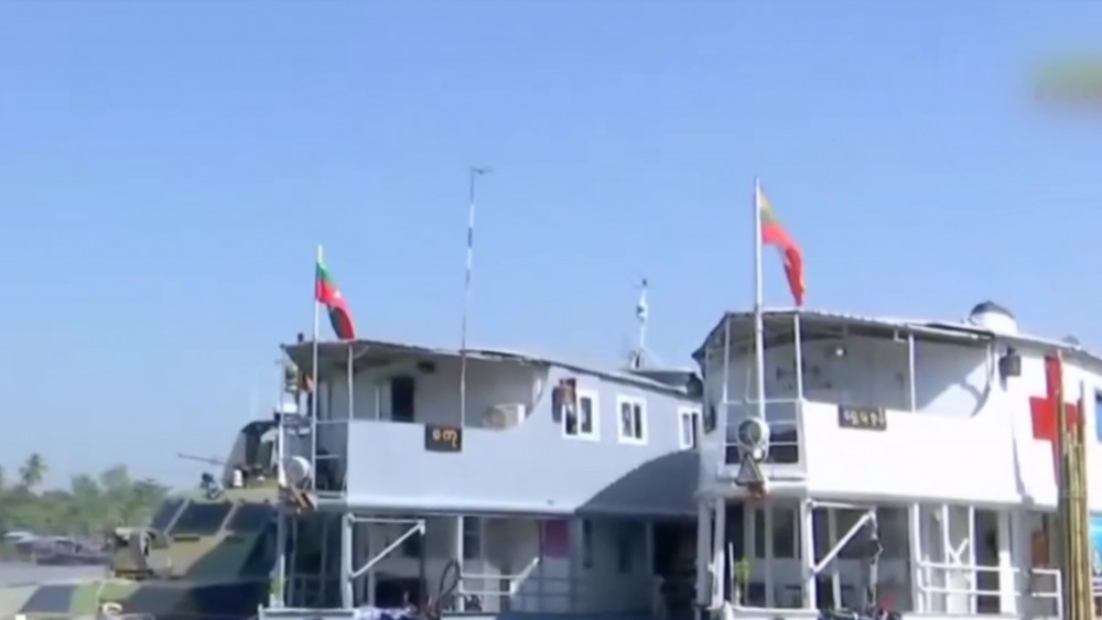 The Tatmadaw River-going Mobile Hospital Vessel (ShwePuzun) and riverine boat (Sagu) with the Tatmadaw Mobile Medical Teams comprised of specialists, medical officers and nurses onboard which are in Ayewarwady Region to provide healthcare services to local people from villages in delta area along the Ayeyarwady River.