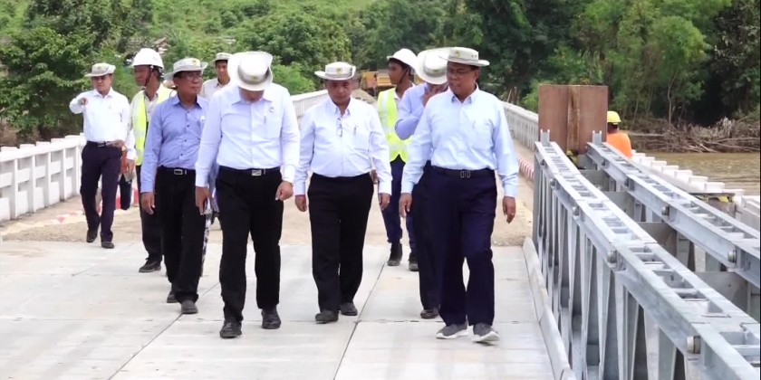 Another temporary bailey bridge was also constructed at the damaged site of the No.2/20 bridge to ensure uninterrupted public transportation. They then inspected the operation of two temporary bailey bridges at the damaged site of Sin Thay Creek Bridge (ThaikChaung) for the uninterrupted public transportation and arrangements to reconstruct the damaged pier of the bridge and coordinated requirements.