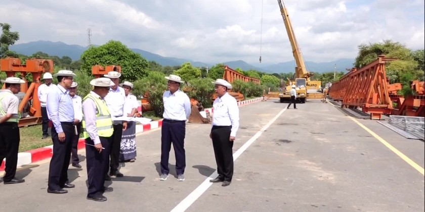 Union Minister for Construction U Myo Thant accompanied by concerned officials inspected the temporary restoration of damaged roads and bridges, resilience of the roads and bridges, condition of the passing of cargo trucks and passenger vehicles as well as the arrangements to reconstruct the roads and bridges in full capacity.