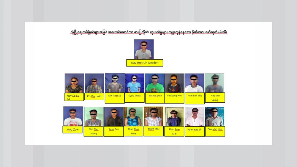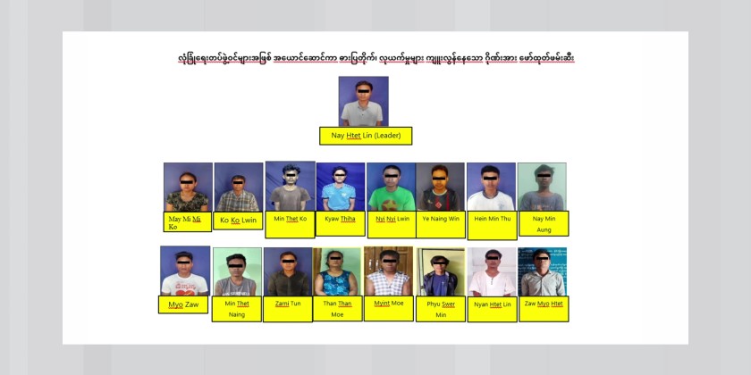 On May 5, 2025, the police arrested 29-year-old Nay Htet Lin, residing in Mya Yay Nandar Ward, Chanmyathazi Township, who was identified as a ringleader in multiple robbery and theft cases. Based on Nay Htet Lin’s confession, police continued investigations and arrested additional members of the gang.