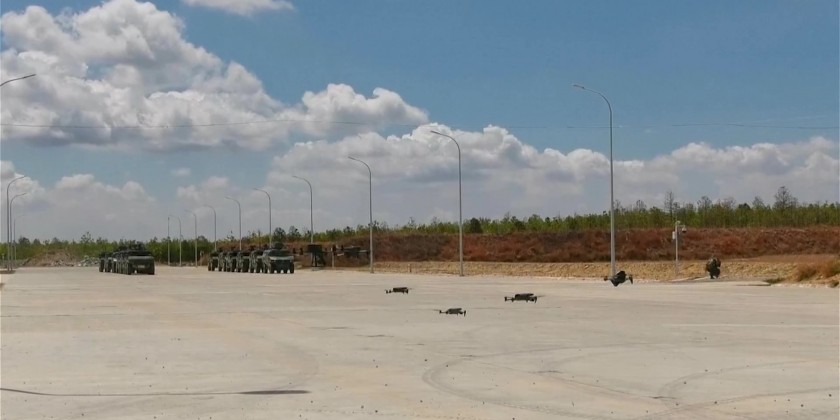 Intelligent equipment such as robot dog and drones are in spotlight at the ongoing China-Cambodia “Golden Dragon 2024” joint military exercise. During exercise, robot dogs were used to investigate the simulated battlefield. It can transmit information about on-site obstacles such as wire fences, discarded tires, and tire spikes.