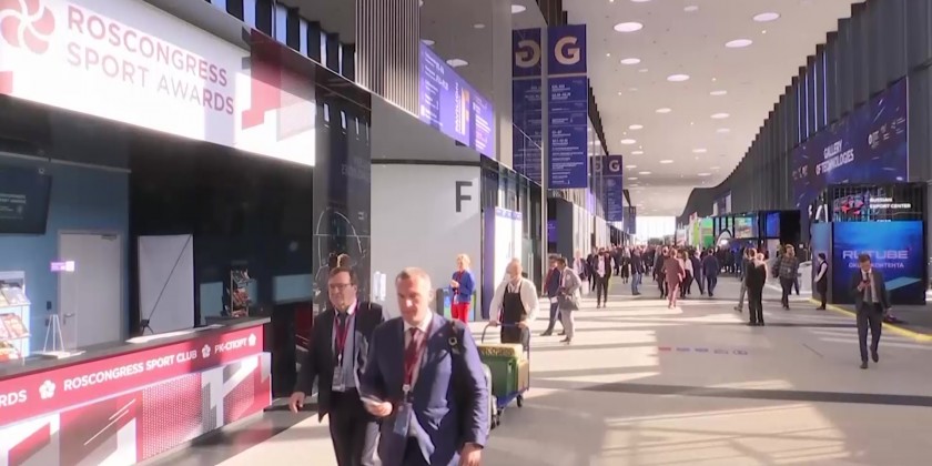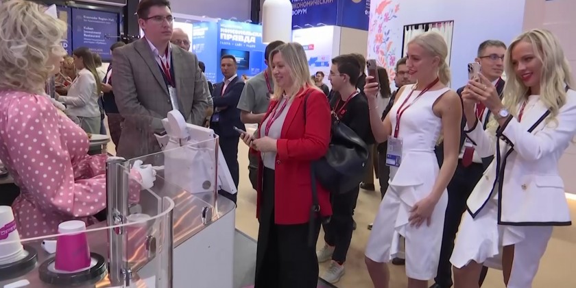 Another robot from the same company was inviting guests to various discussion panels. The advice for the St. Petersburg International Economic Forum is a quiet acknowledgment of the economic difficulties Russia faces as it tries to promote itself to international businesses.