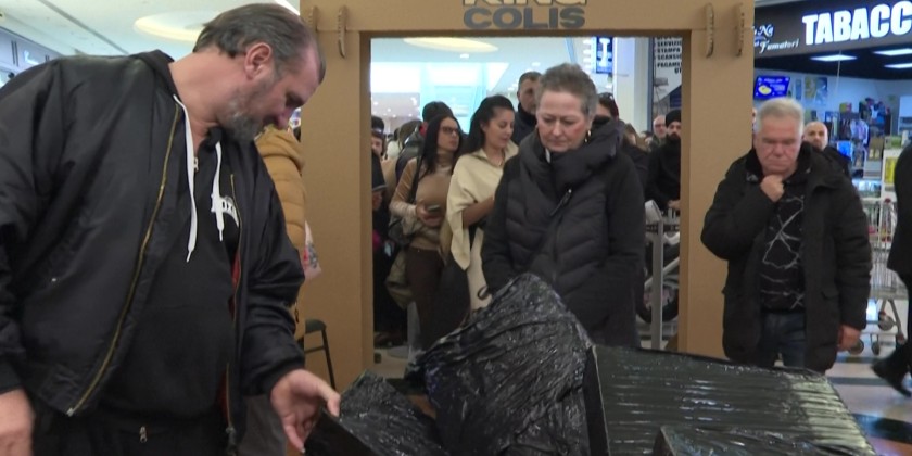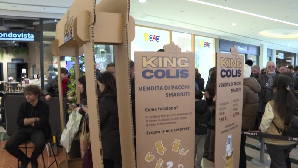 A Rome shopping mall hosted Italy's first-ever 'blind sale' of unclaimed packages.