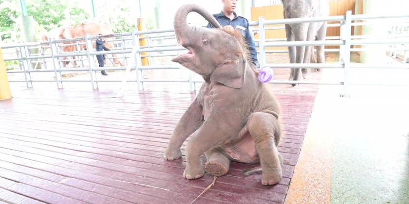 He is living healthy and happy with his mother elephant. It is reported that the baby white elephant Rattha Nandaka has been tamed since childhood and is being trained by the Peace Human and Elephant Interaction Training system to be much tamer.