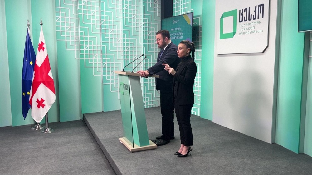 Georgia's election commission said the country's ruling party is leading with 52.99 percent of the vote in the parliamentary elections, according to partial results. The chairman of the commission, said that based on the early data obtained from 2,206 polls, Georgian Dream gained 935,004 votes. Under Georgia's new system of proportional representation, whoever wins half the vote wins half of the 150 seats.