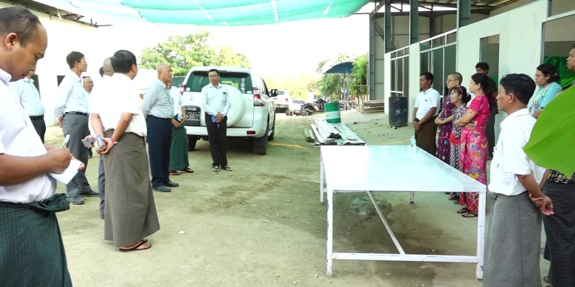 They first visited a cattle farm in Talokpin Village. The farm is being operated jointly by the Doe Myanmar Cooperative Association and the Kyan Tine Aung Cooperative Association. During the visit, the Union Minister heard reports on current operations of the project and emphasized the need to bring in quality and pure-bred cattle before the rainy season.