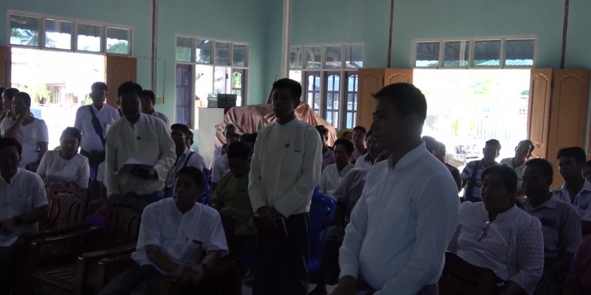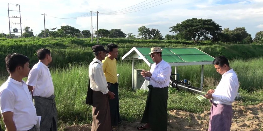 First, the Union Minister and party inspected sustainability of electric water pumping from Hsin-Thay Creek temporary reservoir, regular operation and the status of cultivating monsoon paddy field in Shar Say Pho and Thaya Aye Village in Zayyarthiri Township and gave necessary instruction to the officials and farmers.
