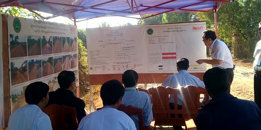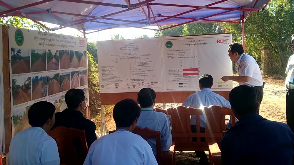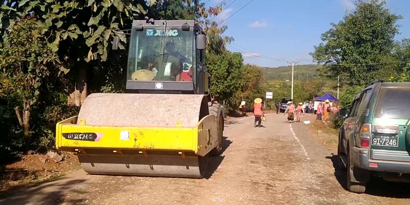 First, the Union Minister inspected paving asphalt on one mile and five furlongs long Naung Hlaing-Pin Tee inter-village road and in responding to clarification of the responsible officials, Union Minister instructed to complete with the scheduled time meeting the quality and standard.