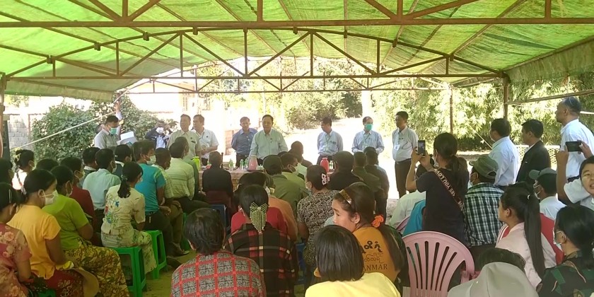 Next, the Union Minister and party inspected the status of completing the asphalt paving the 2455 feet long, 14 feet high village road in Kyee Kaing Village of Inya-village tract implementing with the Village Development Project Supporting Fund and the contribution of the village residents. At the meeting with the village population, village elders and departmental personnel, the union minister urged the village population to report openly regarding with the requirements of the village and then the head officer of Mandalay Region Rural Development Department reported the status of rural development works to be carried out in Pyin Oo Lwin Township and the village population submitted the works to be implemented for the village and the Union Minister coordinated necessaries in responding to the reports.
