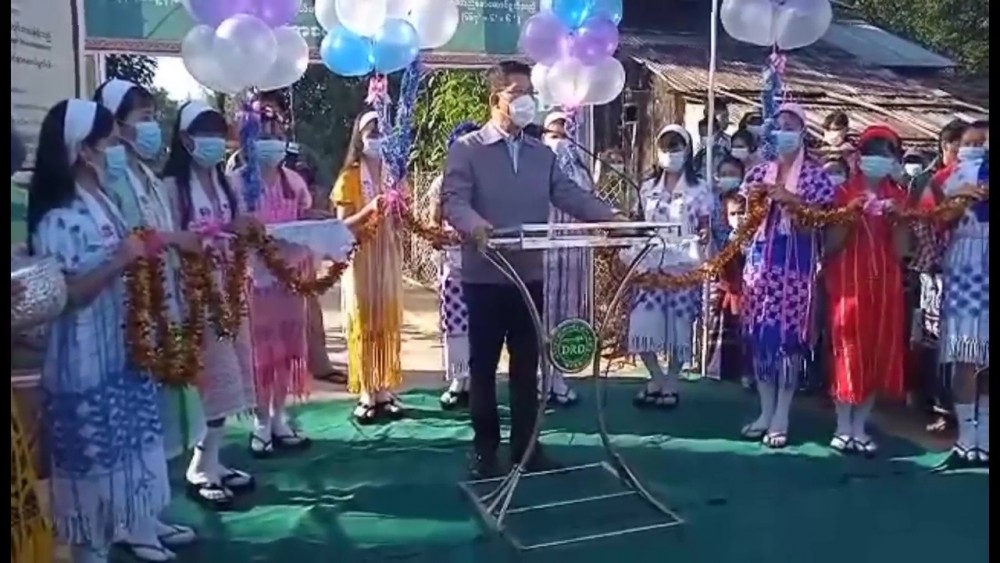 Ayeyawady Region Chief Minister U Tin Maung Win gave an opening speech at the ceremony. The Region Chief Minister and the regional Ministers formally opened water supply linking to the houses and a new village concrete road.