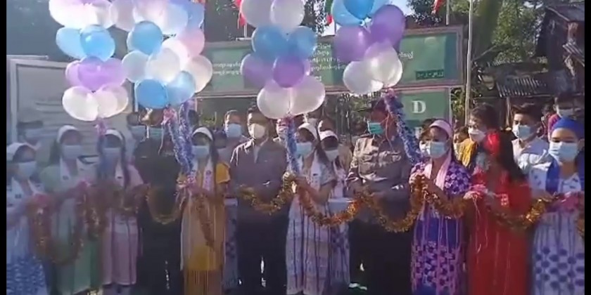 Hailing 75th Anniversary Diamond Jubilee Union Day, water supply system linking to houses and a new village concrete road were opened in a village of Einme Township, Ayeyawady region, Tuesday.