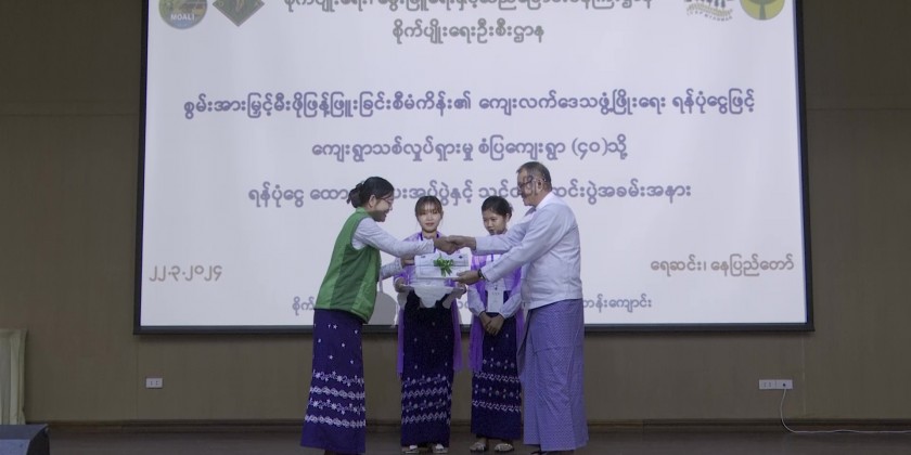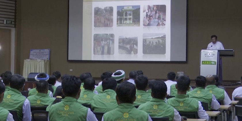 Director General Dr. Ye Tint Tun later reported on current working processes and future plans. Then, the Union Minister provided assistance fund to model villages and Deputy Ministers presented completion certificates to trainees.