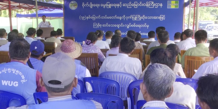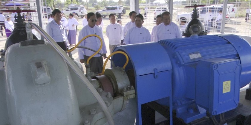 On the same day, Union Minister for Agriculture, Livestock and Irrigation U Min Naung and Union Minister for Cooperatives and Rural Development U Hla Moe together with the Deputy Ministers attended a ceremony on irrigated water distribution from Sin Thay Creekelectric pumping project in Kyan Phosu Village of Pobba Thiri Township.
