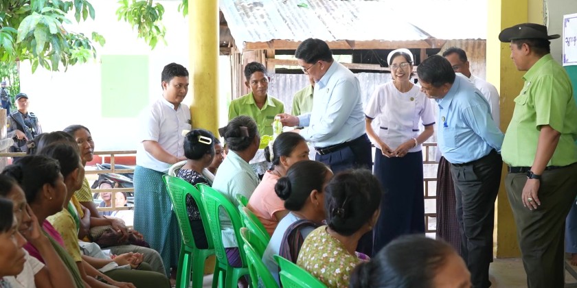 With the arrangements of the Regional Government, specialists from the Magway People's Hospital provided health care services to local communities for general illness, eyes and oral diseases. During the visit, the Chief Minister met with local farmers and urged all to strive for boosting the crop yield through the use of pedigree species.
