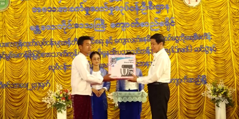 Chief Minister U Myo Aung urged participants to seize opportunities effectively, encouraging them to apply for business licenses at the Small Scale Industries Department. During the ceremony, outstanding trainees received 1 million kyats in cash assistance and equipment to support their entrepreneurial ventures.