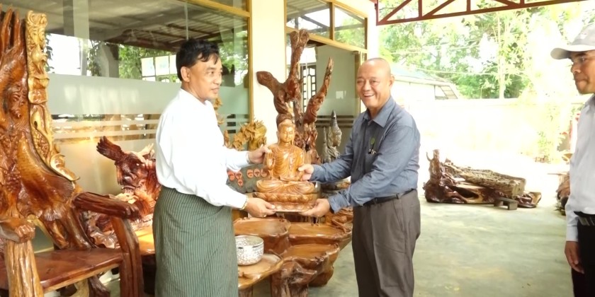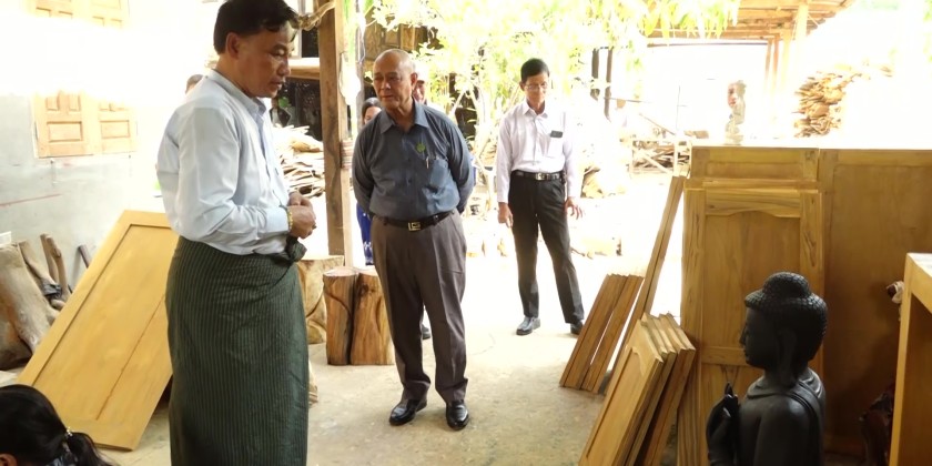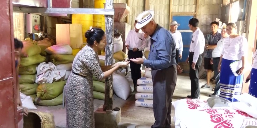 At the Shwe Ou Daung Bean Mill in Pyinmana Township, they inspected earthquake damage to the mill and bean roasting plant and reviewed reports on resumed operations. The Union Minister also discussed MSME loan disbursement and pledged full support for operational challenges.