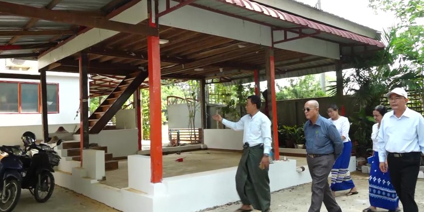 The Union Minister and party then proceeded to the multi-purpose farm of the Township Cooperative Association to inspect the damage to office buildings, the cattle farm and poultry farm and provided necessary instructions. They then visited the YunnMi Tailor Shop in Aye Myint Tharyar Village of Pobbathiri Township, established by the Small Scale Industries Department. He encouraged the trainees to work collaboratively to ensure the business’s success.