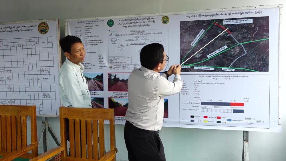 Union Minister for Cooperatives and Rural Development U Hla Moe on Sunday, inspected the concrete paving of Kyauk Ai- Kyar Kan Su Village road in Hlegu Township of Hmawby District in Yangon Region.