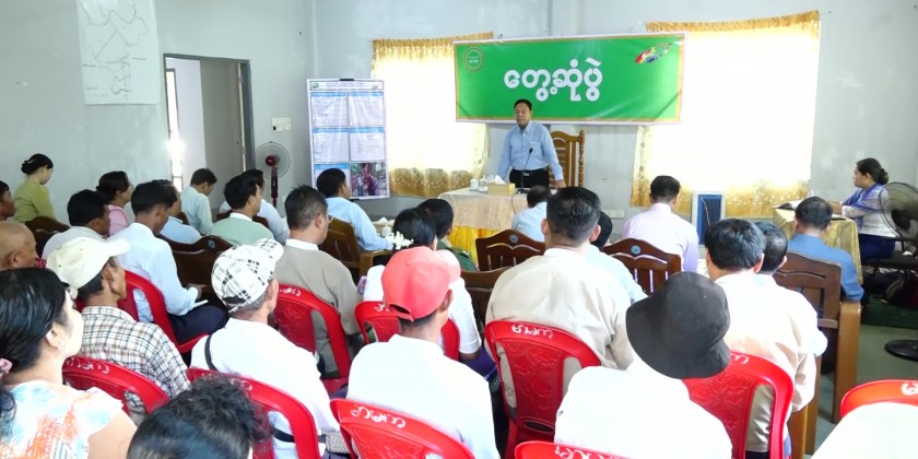 Officials reported on the work undertakings and the Union Minister instructed for timely completion of the tasks, meeting the set standard. They then arrived at Khayaung Village, and met with member farmers of Cooperative Associations, community elders and departmental staff.