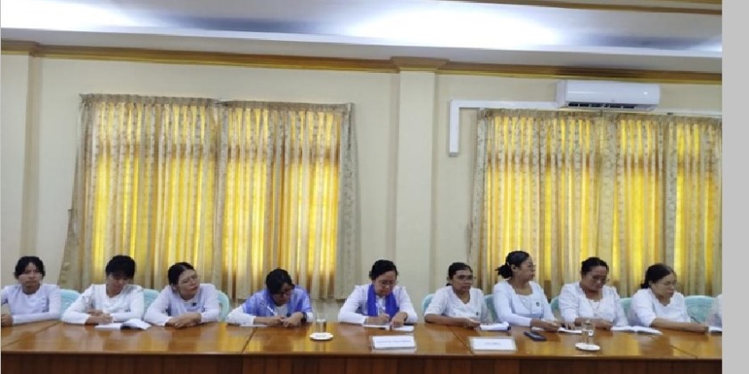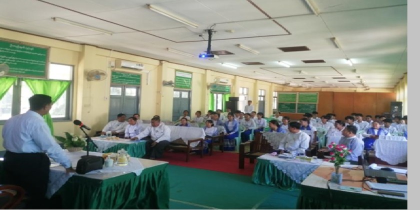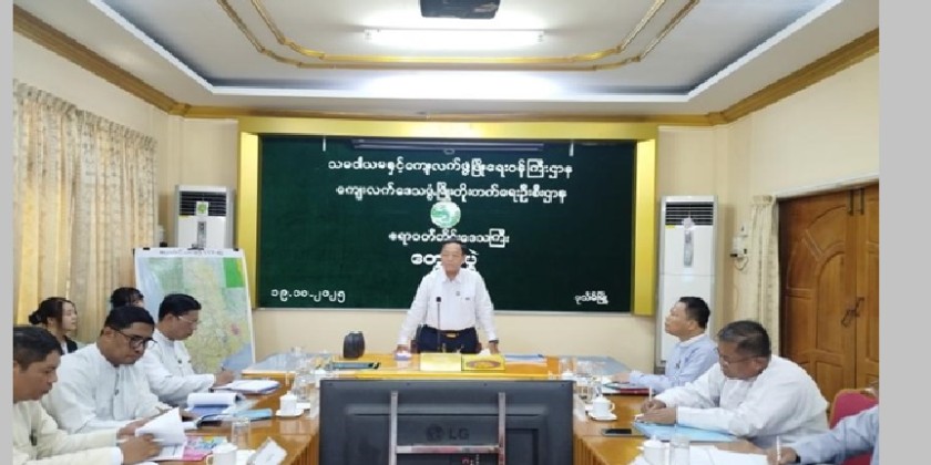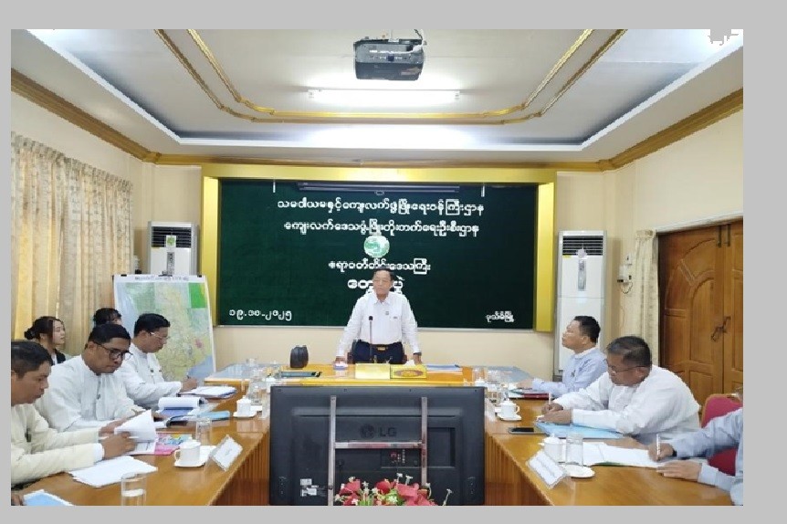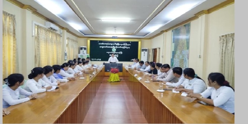 Union Minister for Cooperatives and Rural Development U Hla Moe and officials, met with Region, District, and Township-level staff under the Ministry at the Ayeyawady Region Rural Development Department office on Sunday.