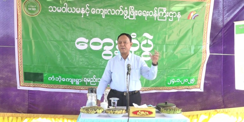 On arrival at Thein Kone Village, the Union Minister met with the executives of Shwe Sin Cooeprative Association and sunflower growers and instructed for achieving the targeted yields, systematic use of crop species, sufficient supply of irrigated water and using correct cultivation method. The Union Minister also held a meeting in Kan Bae Village and coordinated the needs of sunflower growers.