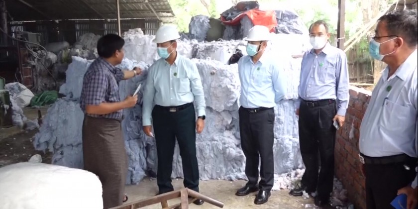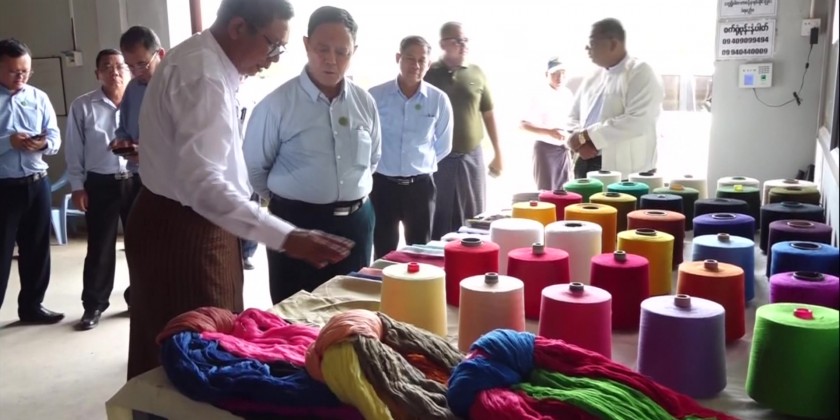 He also visited Myanmar Integrated Engineering Group Company in Kyaukarkwin Village and oversaw the process of cotton thread production, dying the thread and cloths. These factories produce cotton threads by recycling the wastes of garment factories.