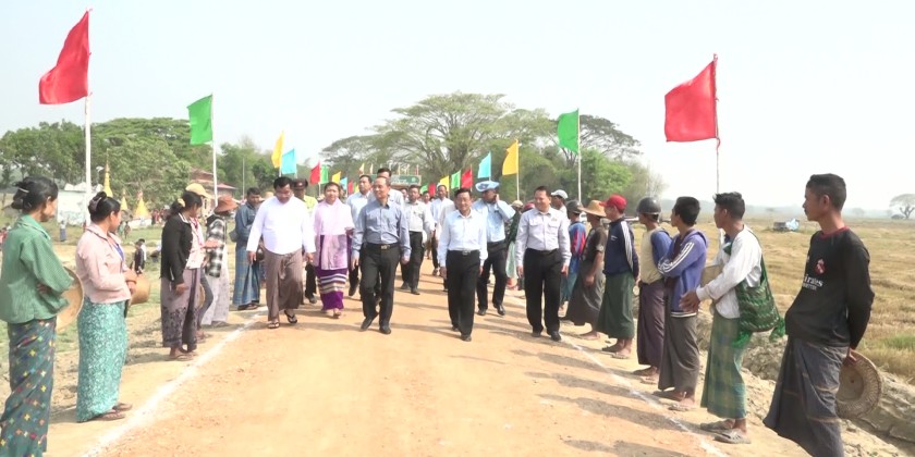Deputy Minister for Cooperatives and Rural Development U Thaik Soe attended the opening ceremony of the new production road in Kanyin Thone Sint Village in Kyaug Kone Township of Ayeyawady Region on Tuesday.