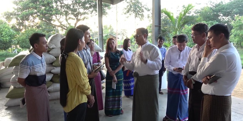 After giving instructions on the needs to implement systematic farmland, the Union Minister viewed poultry farming and the chosen site for construction of Livestock Feed Mill. On arrival at Myanmar-Korea Rice Mill in Sain Sar Pin village of Zeyar Thiri Township, the Union Minister and officials inspected operation processes and sales and distribution of rice, coordinating the requirement.