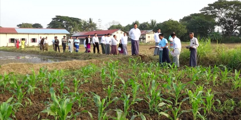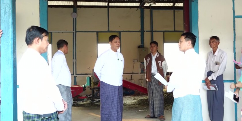 The Union Minister and party later arrived at Thahtay Kone Village and oversaw the cultivation of maize, summer paddy and winter crops as well as production of maize silage. The Union Minister instructed the need for systematic implementation of the agricultural works for boosting the yields.