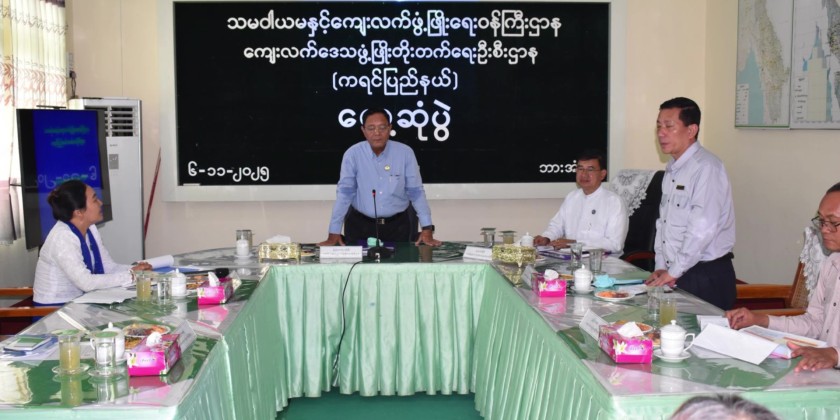 Union Minister for Cooperatives and Rural Development U Hla Moe met with village developmental committee members and departmental officials from 4 villages within Hpa-An, Hlaingbwe and Thandaunggyi townships at Rural Area development department in Hpa-An on 6th November.