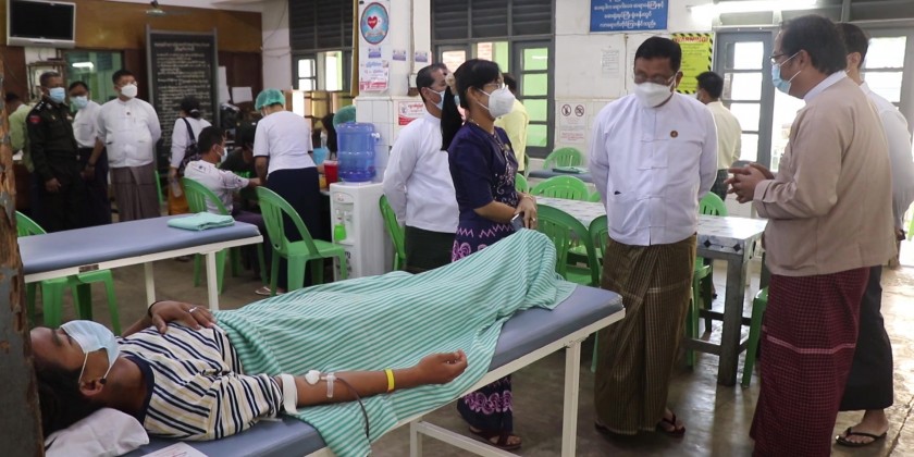Also, the Chief Minister attended a blood donation ceremony organized by the Mon State Young Men's Buddhist Association at the Mawlamyaing General Hospital and provided nutritious stuff to those who donated blood.