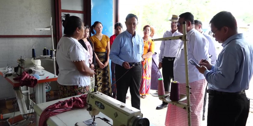 Then, the Union Minister and party inspected the paving process of ThanTa Zar-KautKwae concrete road and called on timely completion of the project, meeting the set standard. Then, the Union Minister and party visited Shwe Tharaphu Women’s Sewing Cooperative enterprise and inspected the work undertakings and fulfilled the needs.