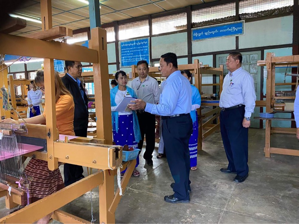 Union Minister for Cooperatives and Rural Development U Hla Moe visited the regional Small-Scale Industries Department and Weaving and vocational training school in Taunggyi Township of Shan State on 29th May.