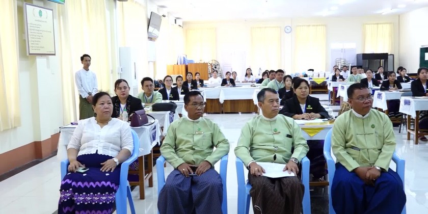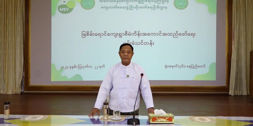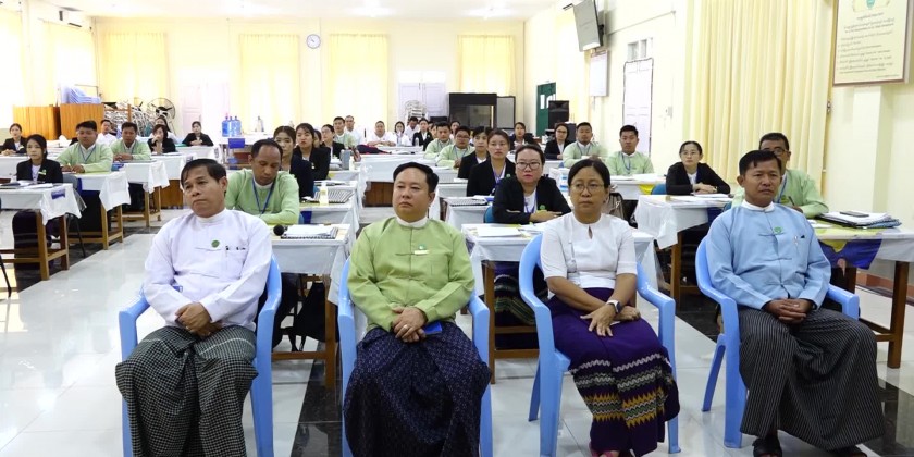 Union Minister for Cooperatives and Rural Development U Hla Moe visited the Department of Rural Development to oversee the Emerald Green Project Implementation Refresher Course. This course is designed to ensure that the project implementation is in accordance with the procedure, to use the Mobile Financial Payment System and to master the practical applications of the MIS system.