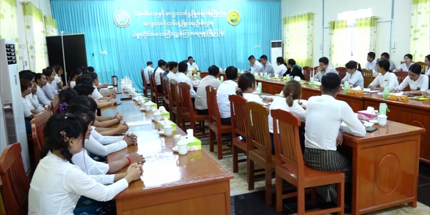 Union Minister for Cooperatives and Rural Development U Hla Moe held a meeting on Friday with member farmers of cooperative associations in Phyu Township. Officials provided updates on monsoon paddy yields and outlined plans for the cultivation of winter crops and summer paddy.
