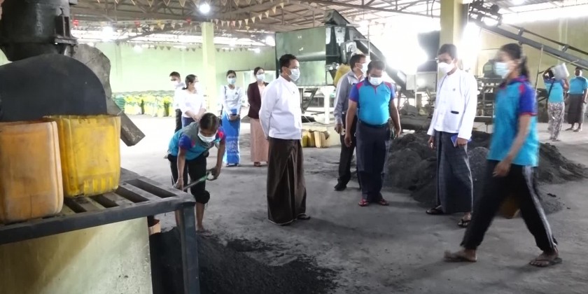 Deputy Minister for Cooperatives and Rural Development U Myint Soe, together with officials, visited the Fertilizer Factory in LaeTha Village of Pobbathiri Township in Nay Pyi Taw Council Area on Wednesday.