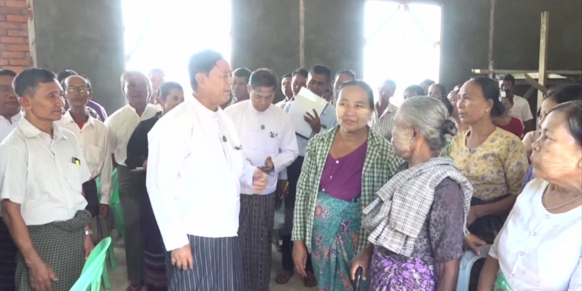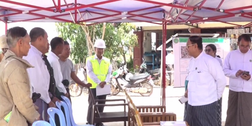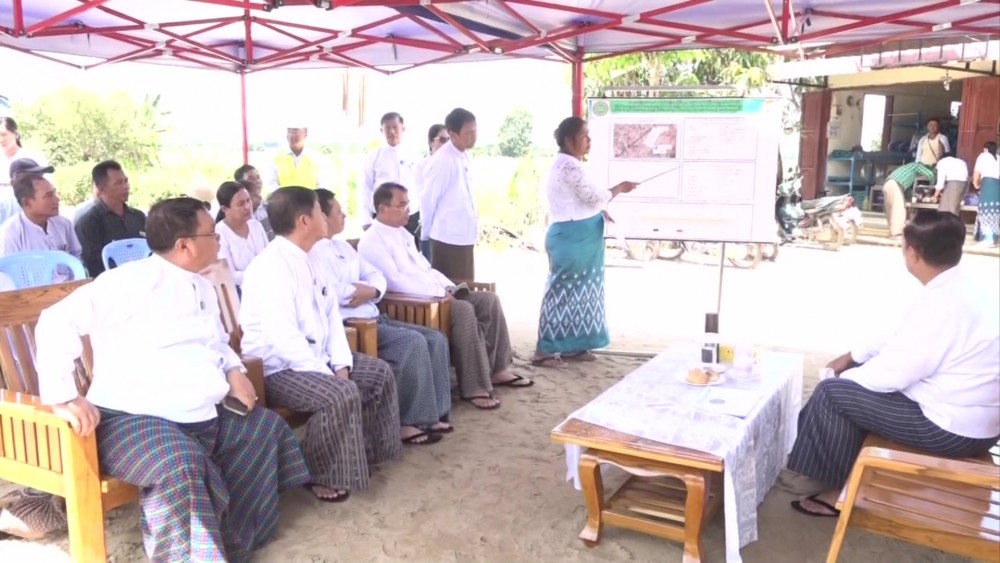 Then, the Union Minister and party visited Zaung Chan Gone Village in Pyinmana Township and met with the local people. Official from the Department of Rural Development reported on the situations of current village development works and implementation of Zaung Chan Gone village as a smart village.